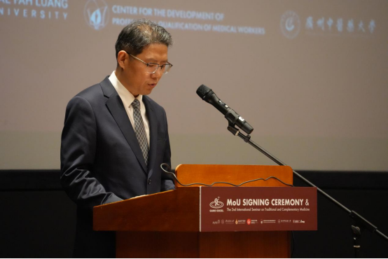 在大会主题演讲环节,史亚飞副校长指出:“我们期待通过紧密携手,成功打造一个国际科研合作的典范,为中医药的标准化、国际化开辟新路径。以本次备忘录为基础,我们将尽快启动并扎实推进鲜萃灵芝的临床试验项目,产出经得起检验的科研成果。”